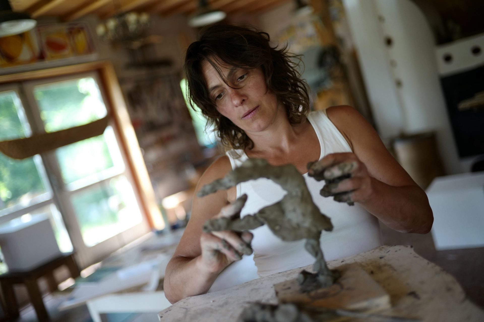 Das 3500 Quadratmeter große Grundstück nahe Kempten hat Lucia von ihrer Urgroßmutter geerbt. Damals wollte keiner diesen dunklen, mit Bäumen eingewachsenen Platz haben. Die damals 23-jährige Holzbildhauerin brauchte dringend Platz zum Arbeiten und für ihre Familie mit zwei kleinen Kindern. Innerhalb von vier Jahren baut sie mit ihrem Mann ein großes Wohnhaus und eine geräumige Bildhauerwerkstatt – mit Holz aus den eigenen Wäldern und Lehm aus der Region. Lucia arbeitet bis zur Erschöpfung, und als das dritte Kind zur Welt kommt, ist sie ausgelaugt. Sie macht weiter, weil sie einfach nicht anders kann. „Seit ich klein bin, will ich immer alles selbst machen und autonom sein“, erklärt sie ihr damaliges Leben.