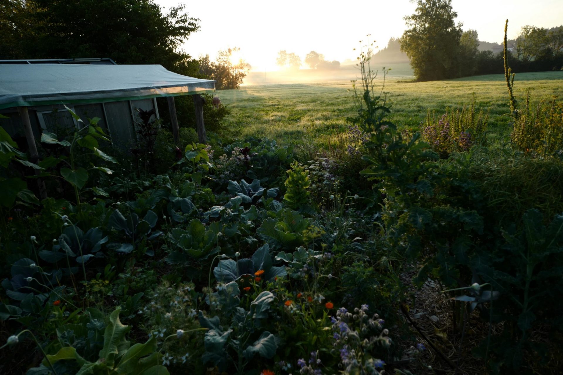 Hinter blassrosa Mohnblumen, gelben Dillblüten und lilafarbenen Erbsenschoten steht Lucia Hiemer in ihrem Permakulturgarten. Das 1000 Quadratmeter große Pflanzengebiet wächst und gedeiht jedes Jahr neu, so wie Lucia, die Gärtnerin, es sich nie hätte vorstellen können. „Die Natur mit ihrer Vielfalt ist wunderbar und vollkommen zugleich“, staunt sie auch nach vielen Jahren noch. Der Garten, in dem sie sich eins fühlt mit der Welt, liegt im süddeutschen Allgäu, einer grünen Hügellandschaft.
