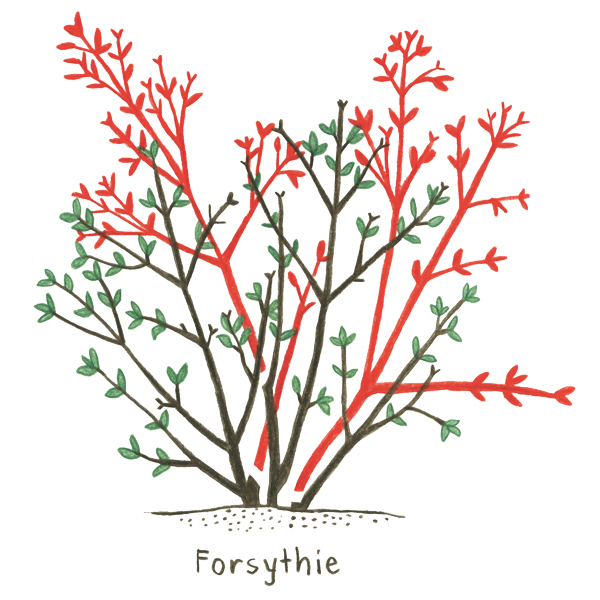 Der Sommerflieder mit dem schönen Namen Schmetterlingsstrauch wird jährlich im Herbst oder Winter stark zurückgeschnitten, je nach Triebstärke und Erscheinungsbild ca. 40–80 cm über dem Boden. Belohnt werden wir mit großen, üppigen Blütenständen. Forsythien gehören wie auch die meisten Wildrosenarten zu einer Gruppe von Sträuchern, die in der Mitte am besten austreiben: kürzen zu starker Sträucher in beliebiger Höhe und bodennah in beliebiger Breite. Außerdem jährlich einige der Quertreiber aus der Mitte ausschneiden. Haselnusssträucher werden im drei bis fünfjährigen Umtrieb ausschließlich am Boden gekürzt, können aber von Zeit zu Zeit auch komplett auf den Stock gesetzt werden. Dazu wird der komplette Strauch etwa 30 cm über dem Boden abgeschnitten.