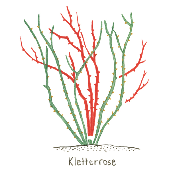 Wenn man über die Rose etwas Gärtnerisches sagen kann, dann das: Sie gehört zu den pflegeintensivsten Pflanzen überhaupt. Das gilt für den Schnitt, ideal ist dreimal im Jahr. Während der Vegetationsperiode schneiden wir, um die wildesten „Auswüchse“ einzudämmen. Im Spätherbst hat ein schneller Rückschnitt die gummiartigen, nicht verholzten Triebteile zum Ziel. Für den eigentlichen Winterschnitt ist das Ende der Frostperiode die beste Zeit. Die Grundregeln: Grundsätzlich werden sämtliche Schnitte etwa 1–2 cm oberhalb der Knospen oder Augenringe gemacht, wie bei allen Pflanzen mit markhaltigen Stängeln. Zuerst lichtet man aus: Quertreiber und zu eng stehende Triebe werden bodennah weggeschnitten. Danach gilt für Beet- und Edelrosen: Kräftige Triebe werden auf 5–7 Knospen oder Augen zurückgeschnitten, dünnere Triebe werden auf 2–3 Knospen gekürzt. Darauf achten, dass die oberste verbleibende Knospe nach außen zeigt. Bodendeckerrosen kann man blind (und sehr stark) zurücknehmen. Für Strauch- und Kletterrosen gilt: Auf jeder Etage gilt die Regel der starken und schwachen Triebe ebenso wie die Notwendigkeit eines luftig-lockeren Aufbaus.