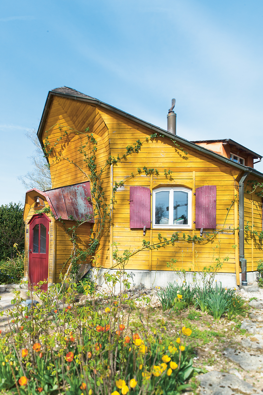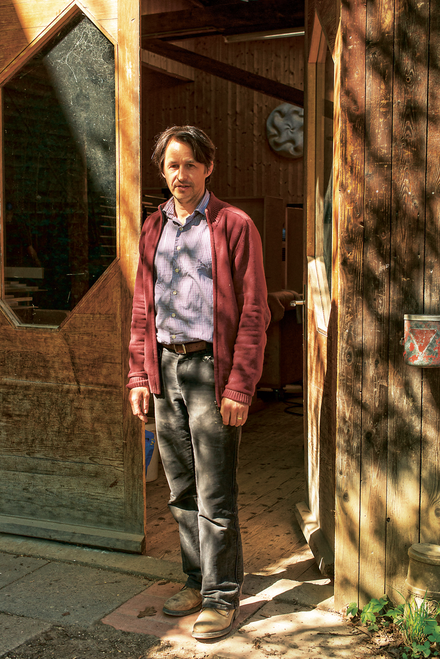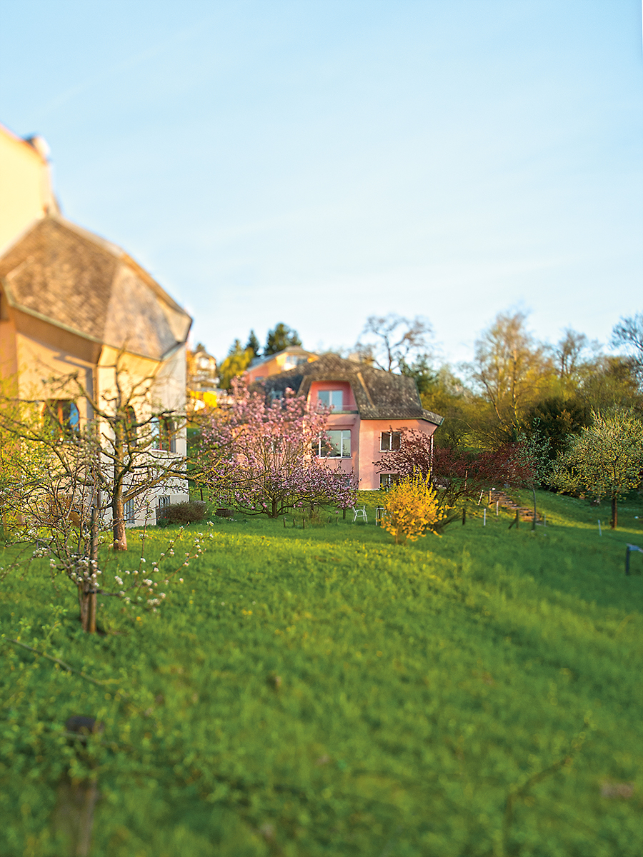 Nach einer Ausbildung als Zeichner studierte Henning Schulze-Schilddorf viele Jahre die Architektur am Goetheanumhügel. Heute entwirft er in seinem Büro im Haus Farbentor selbst Gebäude im anthroposophischen Baustil. „Wir versuchen, dass das Künstlerische Teil des Lebens wird, dass Gebäude die Seele der Menschen ansprechen“, sagt er. Und so lässt er etwa schlichte Stützmauern aus Beton nachträglich von Bildhauern bearbeiten, achtet auf die Auswahl der Baumaterialien ebenso wie auf die Beziehung zu den Handwerkern. „Denn alles, was in einen Bau fließt, fließt auch wieder zu den Menschen zurück, die später darin leben und arbeiten“, sagt Henning Schulze-Schilddorf. Am Fuße des Goetheanumhügels hat der Architekt ein buntes Mehrfamilienhaus gebaut. Wer mit den Bewohnern spricht, merkt schnell, dass sie sich hier wohlfühlen. Dass es Raum für Miteinander gibt und Rückzugsorte. Ein kleines Mädchen zeigt stolz seinen Lieblingsraum hinter dem Haus: einen Erdhaufen. Darauf ein Baumstamm, der über einen Bach ragt. Ein Seil zum Schaukeln. „Ist noch nicht fertig“, sagt der Vater. Man merkt es dem spielenden Mädchen nicht an.