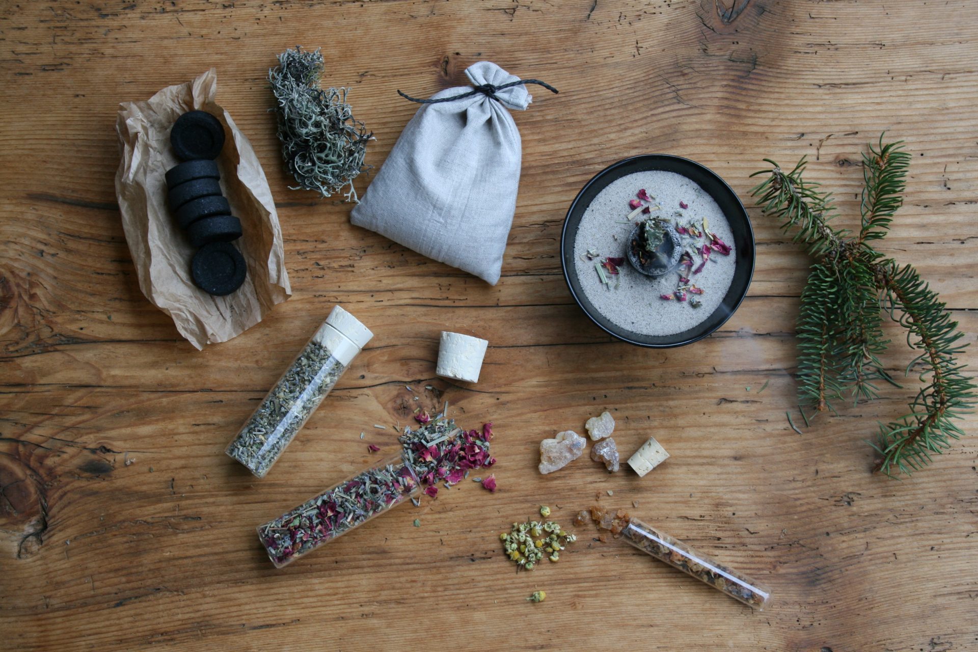 Meine Räuchersets kommen mit Räucherkohle, Sand und Anleitung. Natürlich sind sie plastikfrei verpackt.
