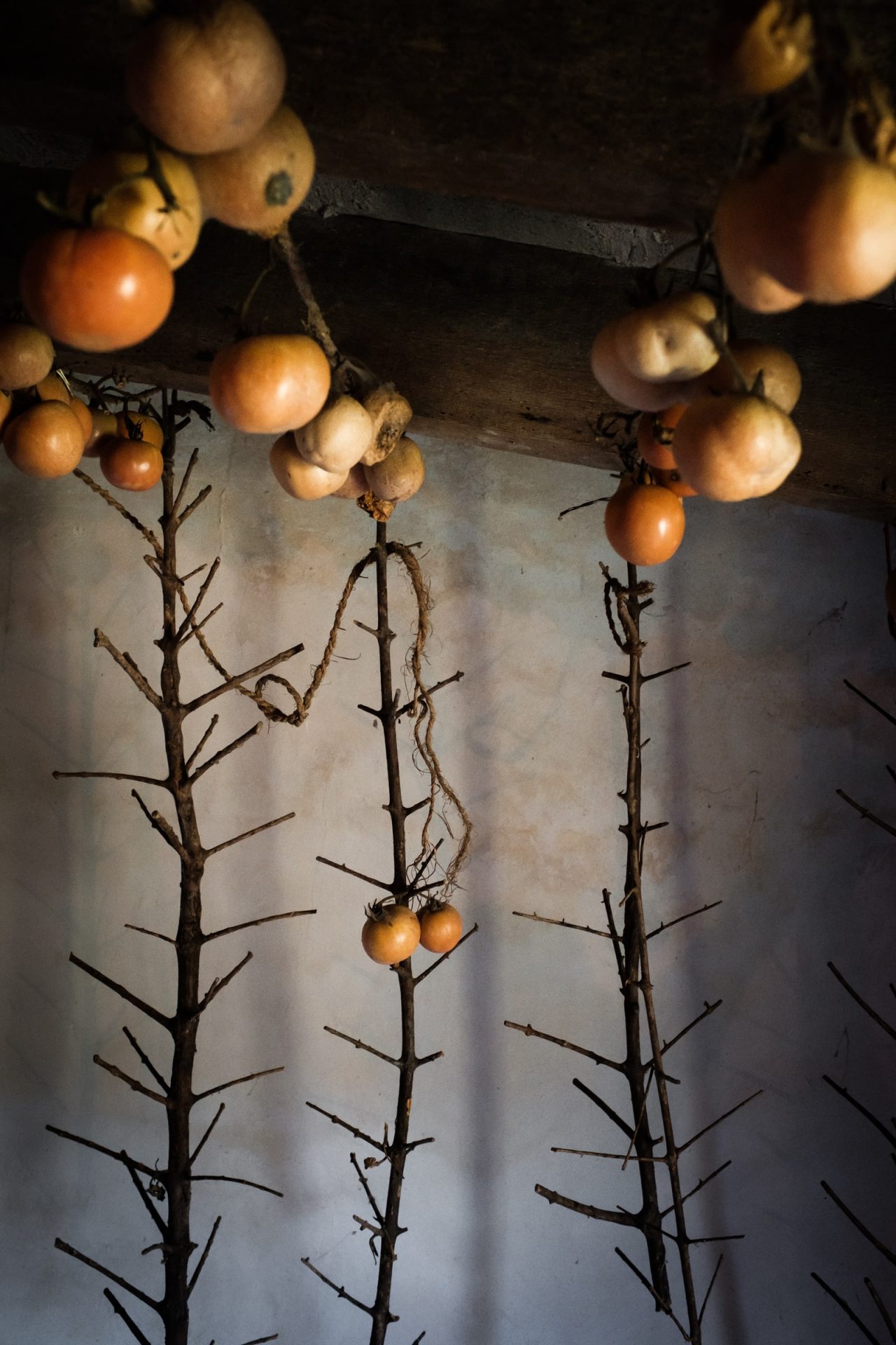 Zwischen üppig sprießenden Bohnen, leuchtenden Salatköpfen und gelb blühenden Tomaten reißt Jaume Adrover unerwünschte Wildkräuter aus. Dazu nutzt er einen handbetriebenen Pflug, den er wie ein Fahrrad übers Feld schiebt. Der 45-Jährige, mit Hut zum Schutz vor der Sonne, die schon vormittags heftig brennt, betreibt zwischen Manacor und Portocolom an Mallorcas Ostküste traditionelle Landwirtschaft: Von den alten Bauern hat er gelernt, wie er unter Ziegen- und Schafsdung Schilfrohr und Mandelschalen mengt, damit das Gemisch über einen möglichst langen Zeitraum Nährstoffe an die Erde abgibt, und wie er mit Zeitungspapier Wurzeln von Zwiebeln umhüllt, um sie vor der Europäischen Maulwurfsgrille zu schützen. Von den Alten sind auch seine Gemüsesorten: Er baut Ramellet-Tomaten an, die seit Jahrhunderten auf Mallorca heimisch sind. Das Besondere an den Früchten: Die Bauern fädeln sie an ihren filzigen Stängeln auf eine Schnur oder hängen sie an ihren Rispen an die Zimmerdecke, denn so bleiben die Tomaten nach der Ernte mehr als neun Monate lang frisch. Auf der Insel konnten die Menschen schon früh das ganze Jahr über Tomaten essen – lange bevor es üblich wurde, die Pflanzen in Gewächshäusern zu ziehen.