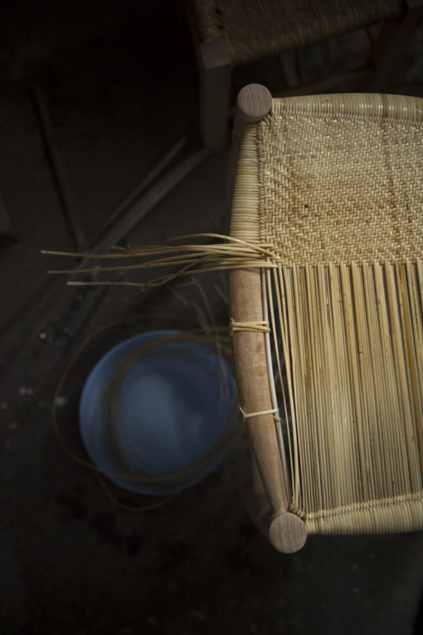Die Praxis aber haben sich beide von den Alten abgeschaut. Von Onkel Italo erlernt Paolo die Kunst des manuellen Drechselns. Beine, Lehnen und Querleisten des Stuhls erhalten dabei ihre besondere Form, die der geniale Descalzi einst ersann: Weil die Sprossen von Sitz und Lehne bei der Montage unter Spannung in die kräftigeren Teile des ansonsten grazilen Stuhlrahmens eingepasst werden, dehnen sie sich darin aus und garantieren so die hohe Belastbarkeit der „Chiavarina“ – ganz ohne Nägel oder Schrauben.