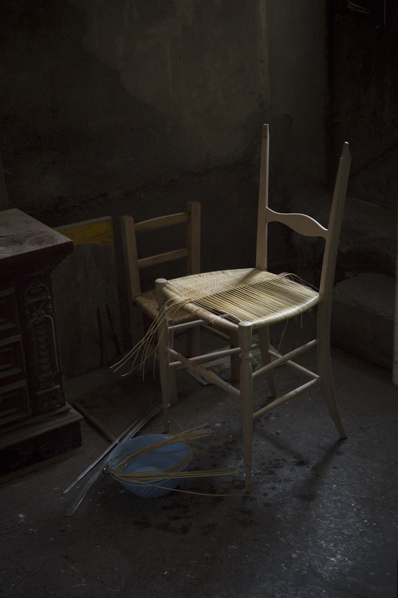 Da kommt die junge Giada gerade recht. Sie bringt eine Ladung in Heimarbeit geflochtener Stuhlsitze vorbei. Das diffizile Flechtwerk im Fischgrätmuster, bei dem die angefeuchteten Peddigrohrstreifen erst waagerecht wie Saiten gespannt, dann senkrecht eingefädelt und eng miteinander verwoben werden, hat ihr noch Großmutter Esther nahegebracht. „Sie und die anderen Flechterinnen saßen damals bei der Arbeit schwatzend unter den Laubengängen“, erzählt Giada, „während wir das heute zu Hause erledigen.“ Knapp sieben Stunden Arbeitszeit kostet eine Stuhlbespannung. Auch Giada will später ihrer Tochter die Flechtkunst beibringen. „Die ,Chiavarina‘ ist unser kulturelles Erbe“, sagt sie fast beschwörend. „Sind wir nicht verpflichtet, es zu bewahren?“