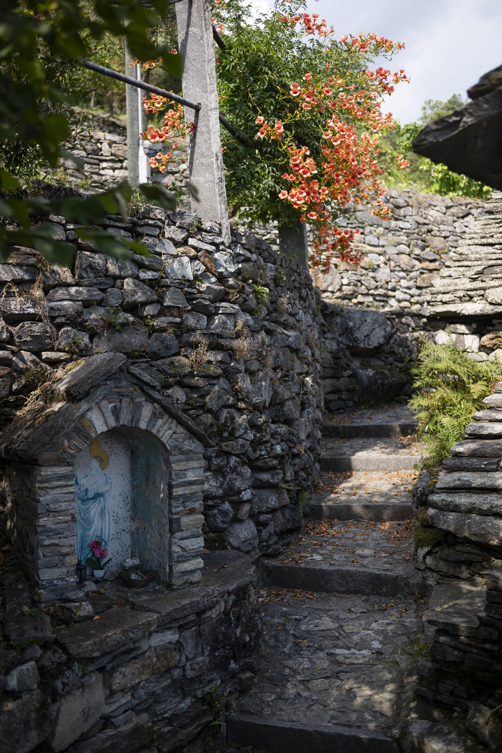 Aus dem Campo Cortoi ist über die Jahre eine Art Paradies geworden, für die Gäste ein Ort zum Atemholen und der Erholung. Für die Bauersfamilien jedoch, die früher hier gewirtschaftet haben, war es alles andere als ein Garten Eden. Die Mühsal der Arbeit ohne technische Unterstützung können wir uns heute kaum ausmalen. Armut und Not führten ab Beginn des 20. Jahrhunderts dazu, dass viele junge Menschen auswanderten: in die nächstgrößere Stadt oder gleich nach Übersee. Schließlich überholte das Tempo des technologischen Zeitalters die Lebensweise in Tessiner Bergdörfern wie dem nahen Mergoscia.