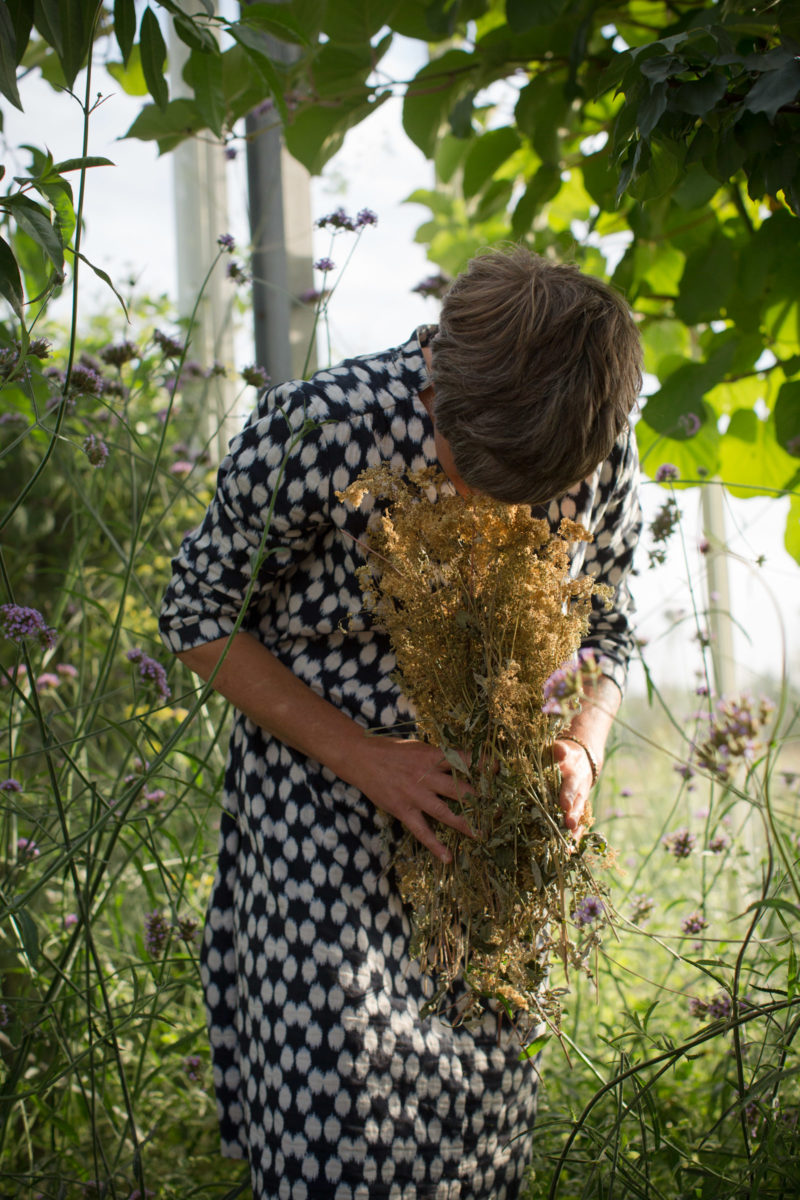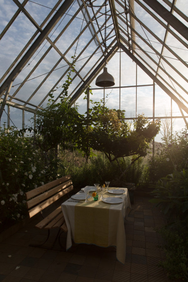 Bei der sensiblen Wahrnehmung der Eigenschaften von Kräutern, Blüten, Wurzeln. Ein großer Kühlschrank birgt unzählige Glasbehälter in allen Größen, gefüllt mit Extrakten. Von allem, was sie im Garten dafür anbaut, dazu gehören auch etliche seltene und exotische Gewächse. Ideal ist der Zugang vom Arbeitsraum direkt ins Gewächshaus, wo nicht nur Empfindliches wächst, wie etwa Aprikosen oder Nashi-Birnen, sondern auch ein großer Tisch dazu einlädt, sich niederzulassen. Wissenschaftliche Bücher aufzuschlagen. Oder doch etwas zu essen und zu trinken.