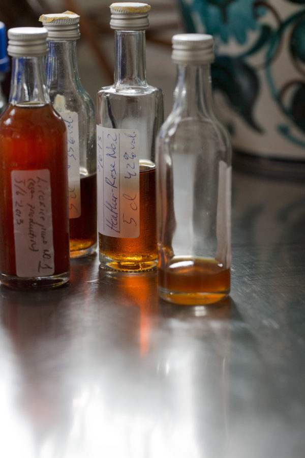 Eine weitere Arbeit war die Entwicklung der Serie „The taste of a scent“, flüssige Pflanzenextrakte in Bioqualität, mit denen das Trinkwasser im Glas auf natürliche Weise unterschiedliche Aromen annimmt, etwa Damaszenerrose mit Heidekraut oder Usbekische Süßholzwurzel. Und einen, wie manchmal beim Riechen eines Duftes oder Wahrnehmen eines Geschmacks, an ein Erlebnis oder eine längst vergangene Zeit erinnert. Die Serie ist aktuell ausverkauft.