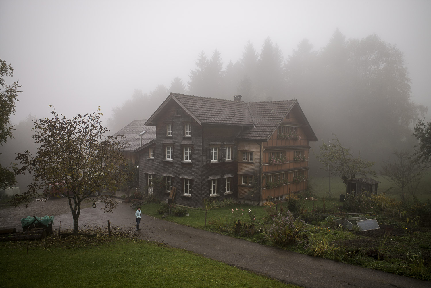 Der Stapel mit fertigen Holzschindeln ist gewachsen und sehr hoch geworden. Jetzt ist es Zeit, die Kühe für das abendliche Melken in den Stall zu treiben. Anita und Emil schreiten mit großen Schritten in Gummistiefeln durch die nasse Wiese. Der kleine Lukas eilt hinterher und bald voraus. Dank der Glocken finden sie die Tiere trotz des dichten Nebels. Emil hört eine Kuh weit abseits am Waldrand und verschwindet im trüben Grau, um sie zu holen. Nun sehe ich nur noch die Umrisse des dunklen Fichtenwaldes.