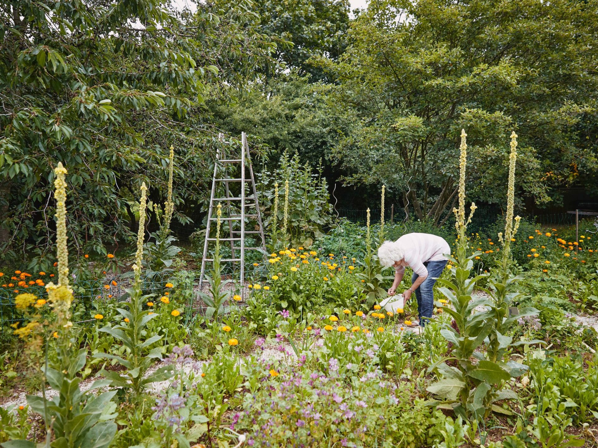 Beim Rundgang durch den Waldgarten berührt Gudrun ihre grünen Zöglinge im Vorbeigehen, atmet deren Duft tief ein, nennt sie beim Namen und beschreibt liebevoll die individuellen Eigenschaften und Heilkräfte. Beinwell sei gut für die Gebeine, Johanniskraut bringe Sonne ins Gemüt.