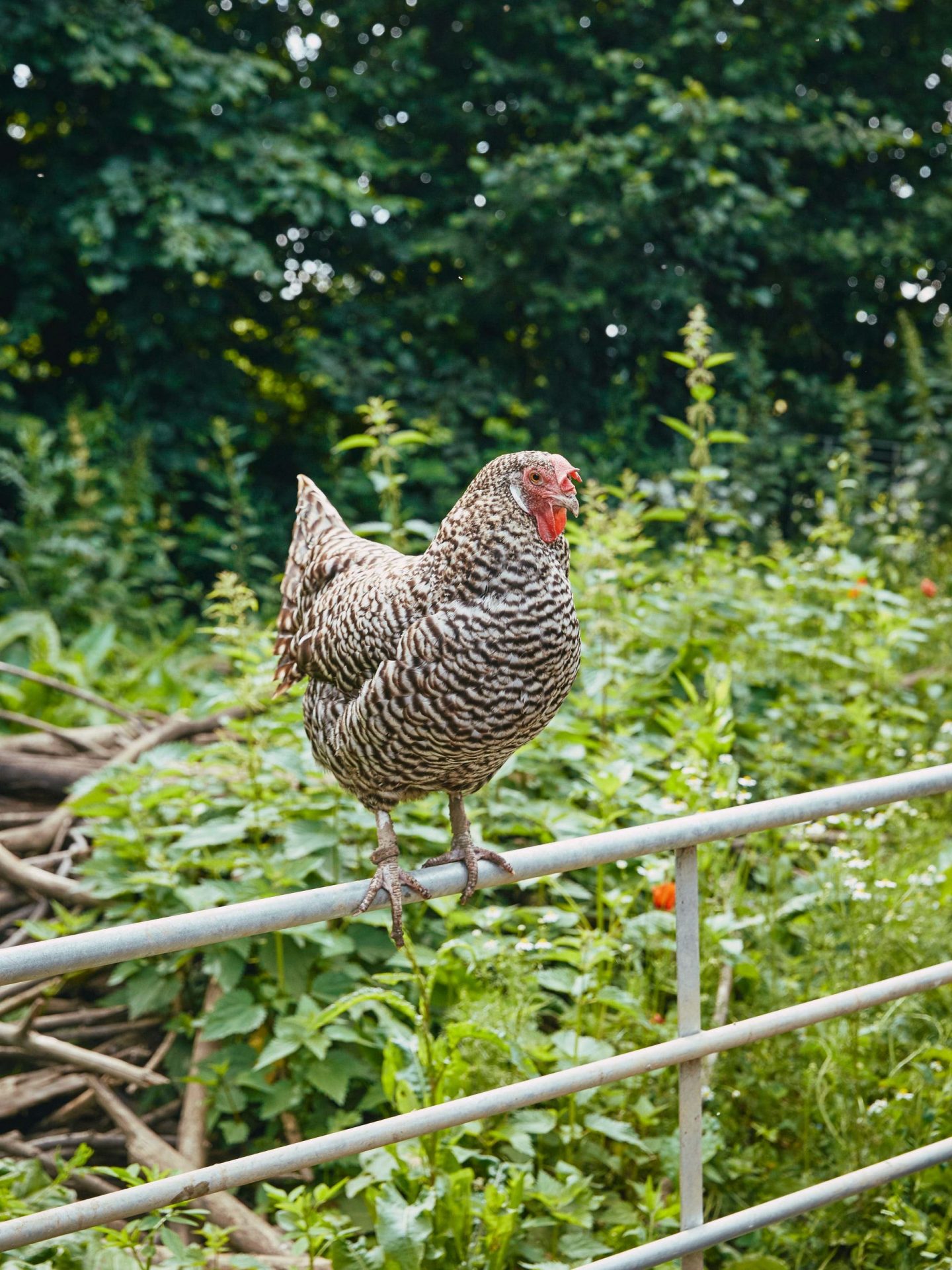 In der Nutztier-Arche bewahren die beiden Freundinnen bedrohte Arten wie Wollschweine, Waldschafe und Sperber vor dem Aussterben. Die Tiere liefern Mist, der als Trockenmasse in den Häcksler und als Mulch zurück auf die Beete kommt. Das Ergebnis: ein gesunder Boden, der wiederum Nahrung für die Tiere produziert. „Somit sind die Kreisläufe im Garten alle geschlossen“, sagt Hanne. Der Hühnerstall, wo die Junghühner vor dem Fuchs geschützt leben, fungiert als automatische Düngeanlage und wird einmal wöchentlich zwischen den Beerensträuchern versetzt. Bald sollen Ziegen das Mähen der Wiese unterstützen.